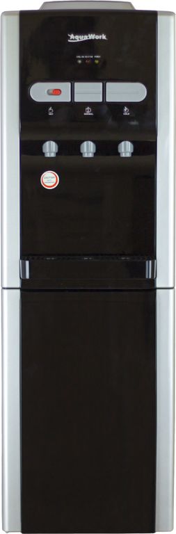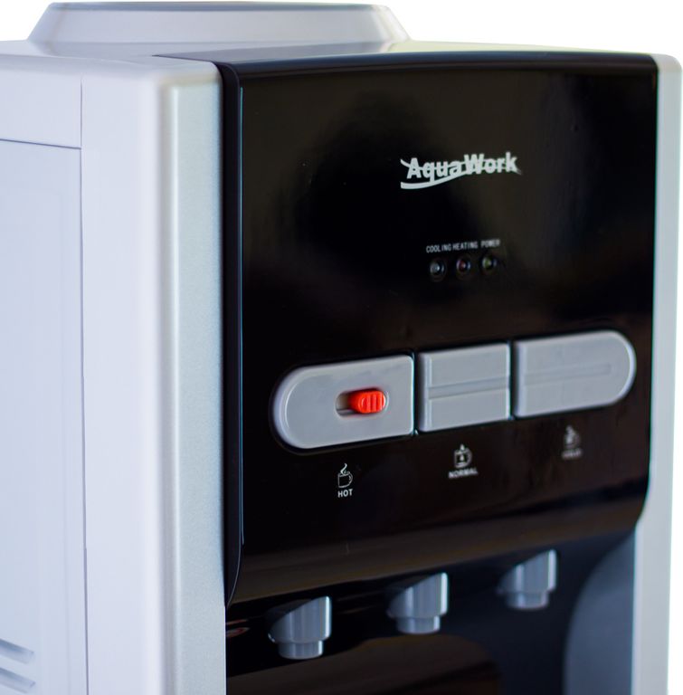 Кулер оснащён тремя кранами: есть возможность налить воду горячую, холодную и комнатной температуры.